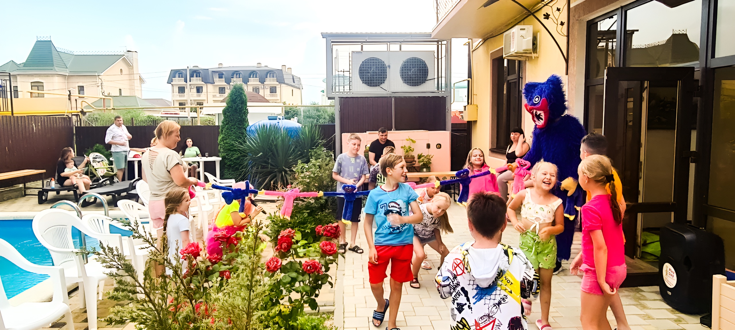 Отель находится в центре популярного у туристов поселка Витязево, расположенного на берегу Черного моря в 20 минутах езды от Анапы. В поселке хорошо развита инфраструктура: большой выбор кафе, столовых, караоке-баров, есть аттракционы и аквапарк. В 8 километрах разместился железнодорожный вокзал. Куда прибывают поезда из Москвы, Петербурга и других городов России.