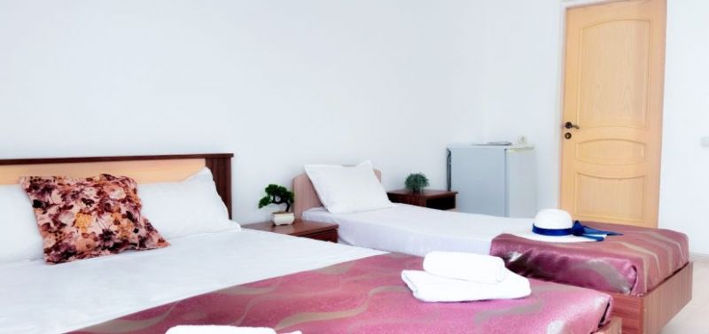 Отель расположен на Московской улице на закрытой благоустроенной территории. Жилой фонд включает в себя номера разные по категории и площади номера. В комнатах – классический интерьер, есть кондиционер, телевизор-ЖК, холодильник. Все номера оборудованы ванной комнатой, где отдыхающих ожидают необходимые косметические наборы.